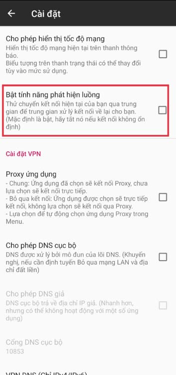 Bấm dấu 3 gạch trên cùng bên trái chọn “Cài đặt” => ở dòng “Bật tính năng phát hiện luồng” tắt bỏ dấu tích đi
