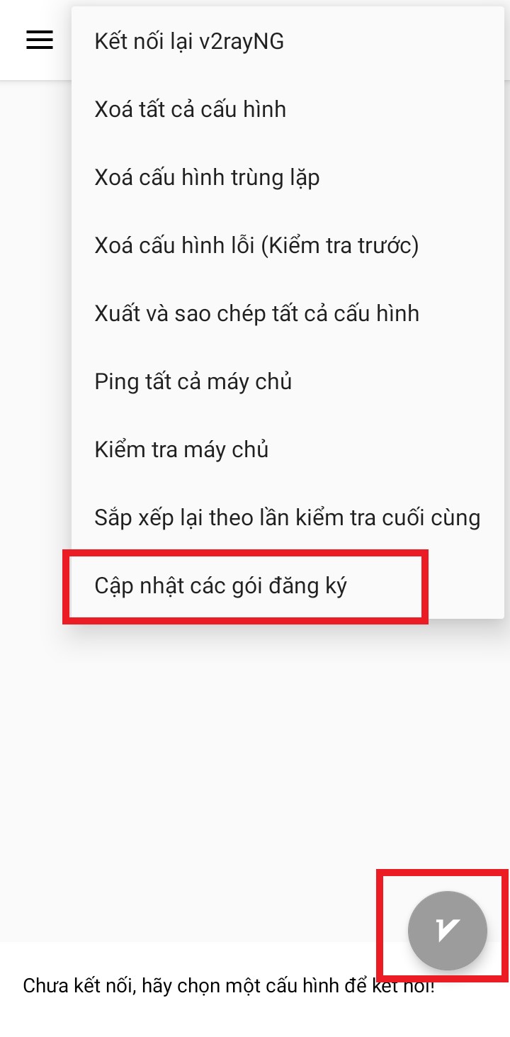 Sau khi bấm đồng bộ sẽ nhảy qua app => Bấm dấu 3 chấm trên cùng bên phải của app chọn dòng cuối “Cập nhật các gói đăng ký”